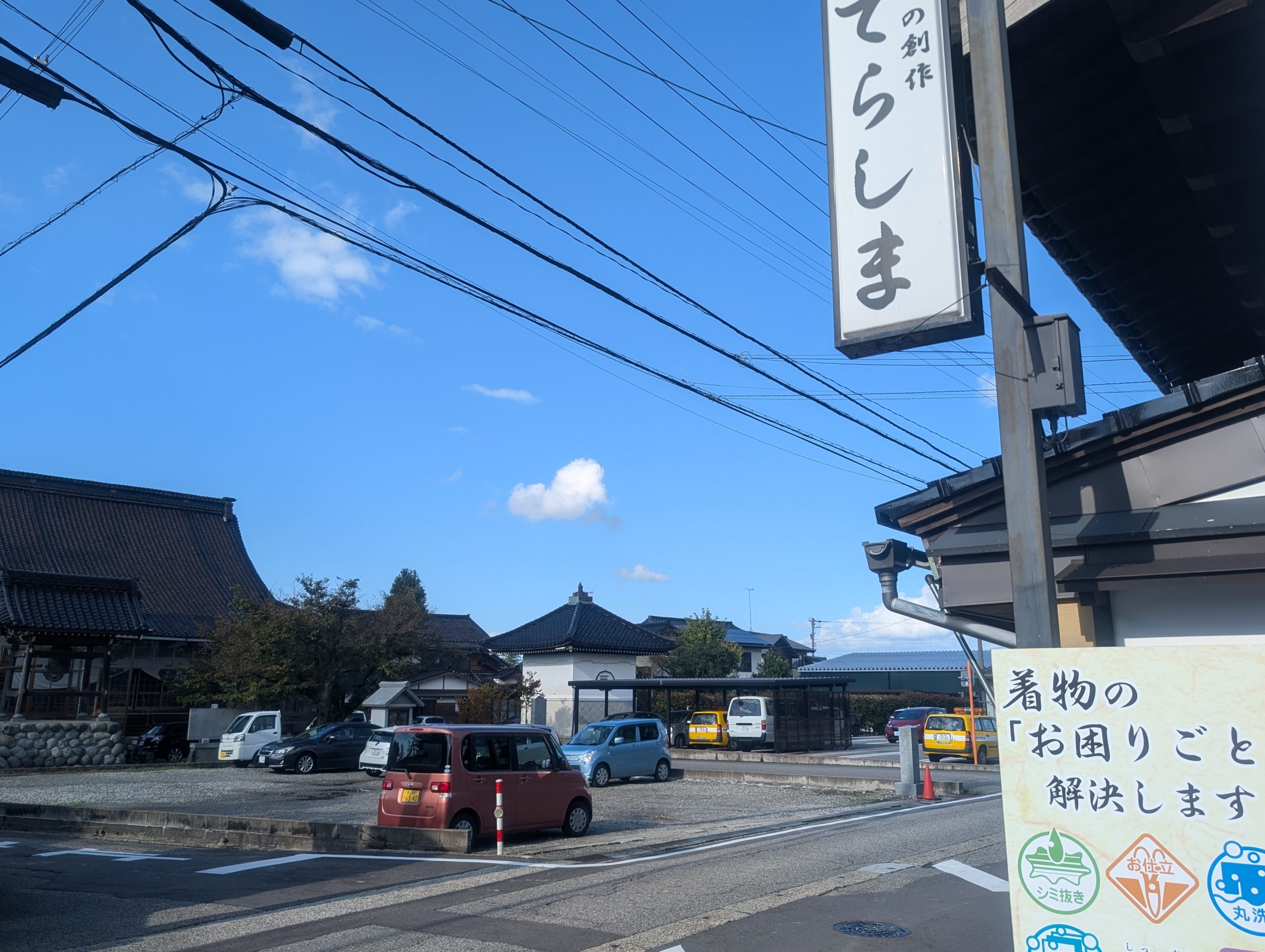 道を挟んで店舗前(砂利)にも駐車場がございます。 空いているところにご自由にお停めください。 横断歩道はございません。 道路を渡る際には車の往来にくれぐれも十分ご注意ください。